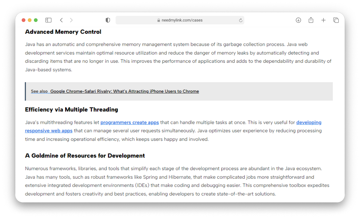 The company we worked with is an IT agency that has been providing front-end and back-end development services since 2012, as well as offering custom analytical solutions, mainly serving clients in the USA. The collaboration started in early 2024, and in a short period, we were able to eliminate the key issues the client faced. The main challenge were finding high-quality and niche platforms for link placements. Before reaching out to NeedMyLink, the client had worked with several intermediaries, but the results did not meet expectations. The lists of platforms provided to them were too monotonous and did not meet their requirements. These resources could not provide the necessary conditions for effective link-building, which seriously limited the company’s growth potential and visibility in search engines.