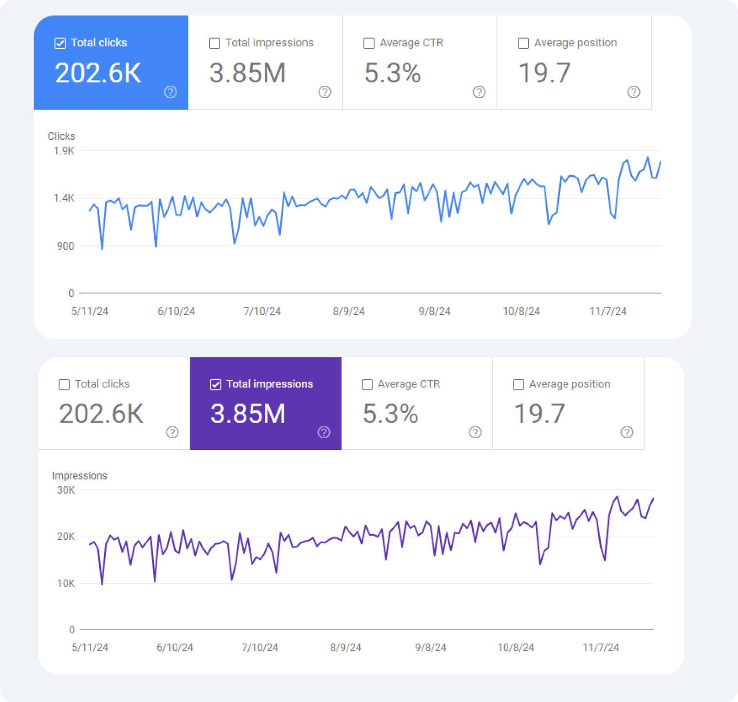 Після двох років роботи нашій команді вдалося не лише виправити ситуацію з неякісним посилальним профілем, але й підвищити метрики сайту. Так, ми можемо погодитися, що результат у вигляді зростання органічного трафіку був досягнутий не лише завдяки посиланням, а й завдяки комплексним SEO-роботам, які виконував замовник. Однак не варто забувати, що правильний посилальний профіль забезпечує 50% успіху. Виділимо основні зміни сайту в період нашої співпраці: